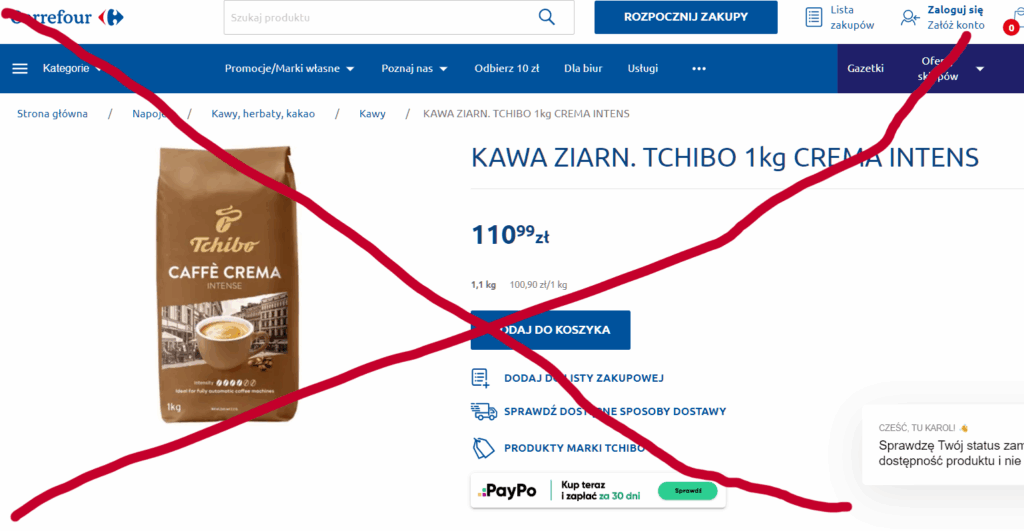 Więcej ani w Carrefourze ani kawy Tchibo już więcej nie kupię, gdziekolwiek by ją sprzedawano o czym uprzejmie informuję, przestrzegając innych przed zakupami olline w Carrefourze.