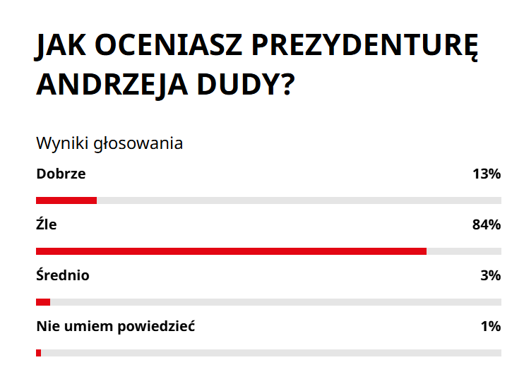 Wyniki sondy SuperExpressu 2024-10-14 admin-fpIxsaau Dodaj komentarz Jak oceniasz prezydenturę Andrzeja Dudy? (se.pl)